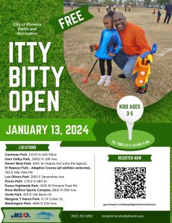 Join the city of Surprise for the Itty Bitty Open, a way to introduce children to golf. This free event has three clinic times starting at 9, 10 and 11 a.m. Space is limited, register ahead of time here. After, kids will participate in fun-filled, non-competitive golf games. Each golfer will receive a set of plastic golf clubs, balls, a bag and a visor. Participants are asked to leave their own clubs at home. An adult must accompany each golfer. A special contest with prizes will be held at each session for the Best Dressed Golfer and Caddie Team. See website for varies locations.