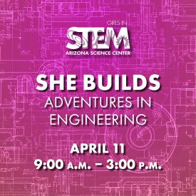 Join Arizona Science Center for an inspiring day of hands-on engineering fun! Grades 4-8 can dive into core engineering principles, explore cutting-edge innovations and hear from trailblazing women shaping the future of technology, design and sustainability. Don’t miss this chance to learn, create, and innovate!